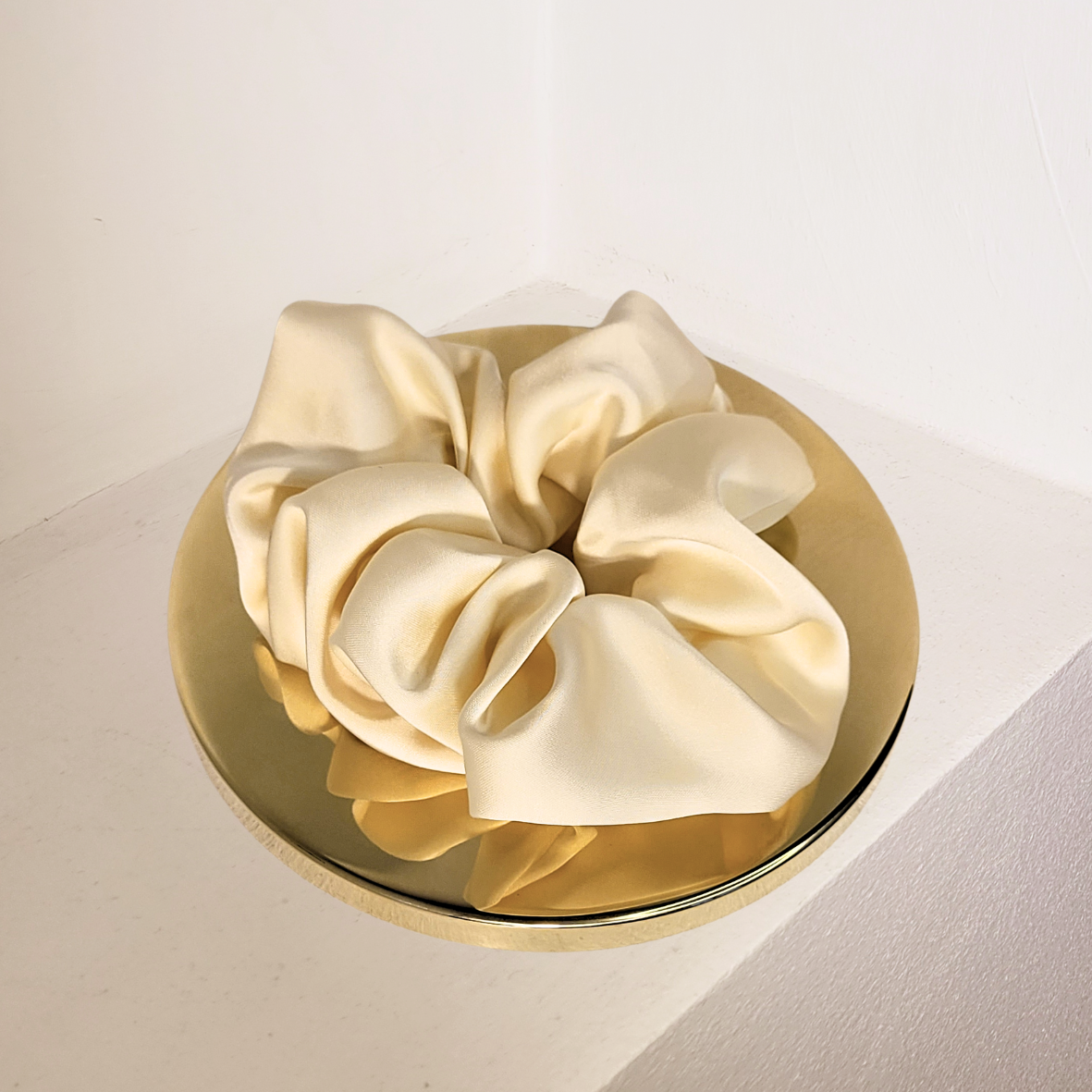 Oplev subtil elegance med vores Snowberry scrunchie i hvid satin. Denne oversize scrunchie fuldender din stil og beskytter dit hårs sundhed og skønhed.