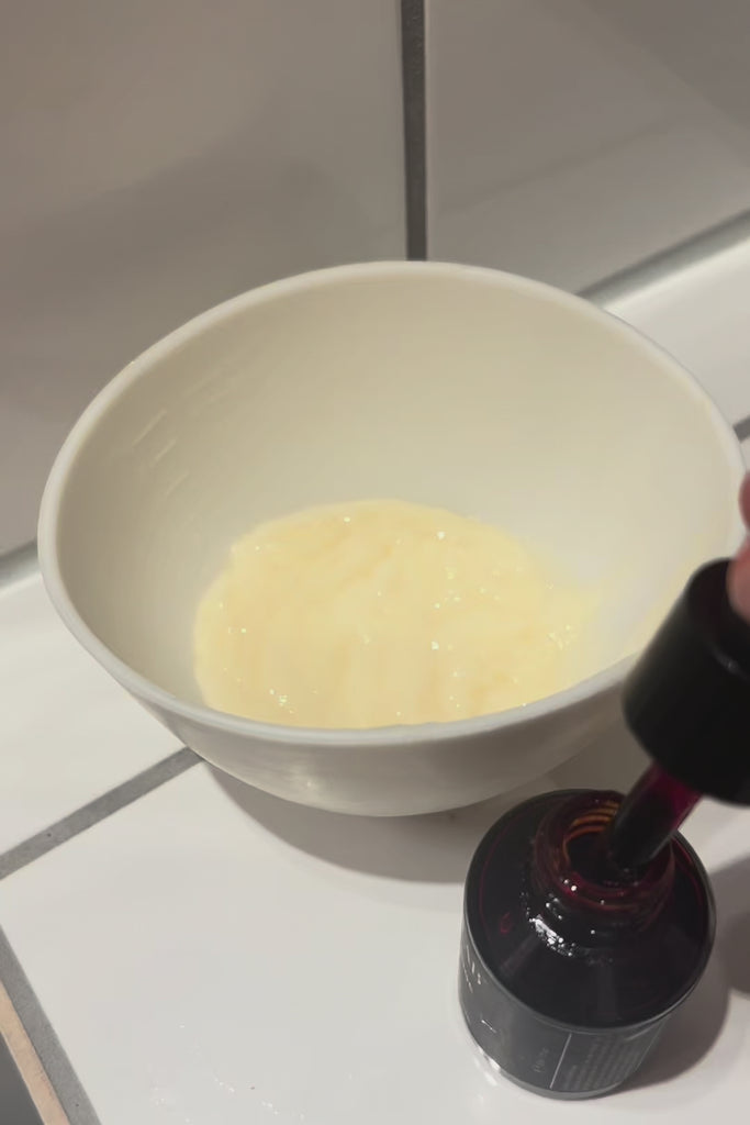 Add your conditioner or mask of choice to the first line. Add your desired amount of concentrate, mix and apply.